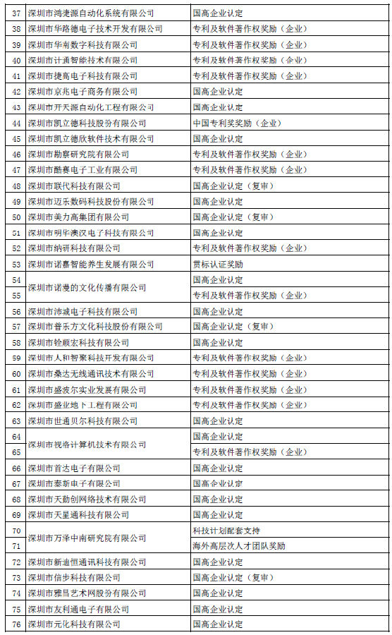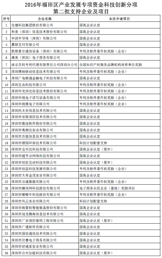 福田区产业资金科技创新分项第二批支持企业及项目公告(16.10.27)