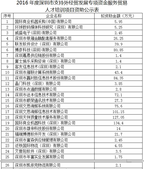 2016年度深圳市支持外经贸发展专项资金服务贸易人才培训项目公示(16.11.03)