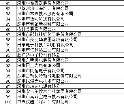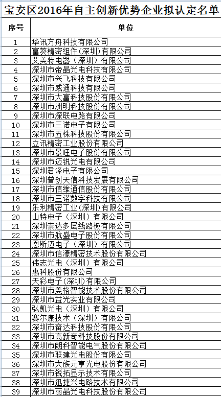2016年宝安区自主创新优势企业拟认定名单公示