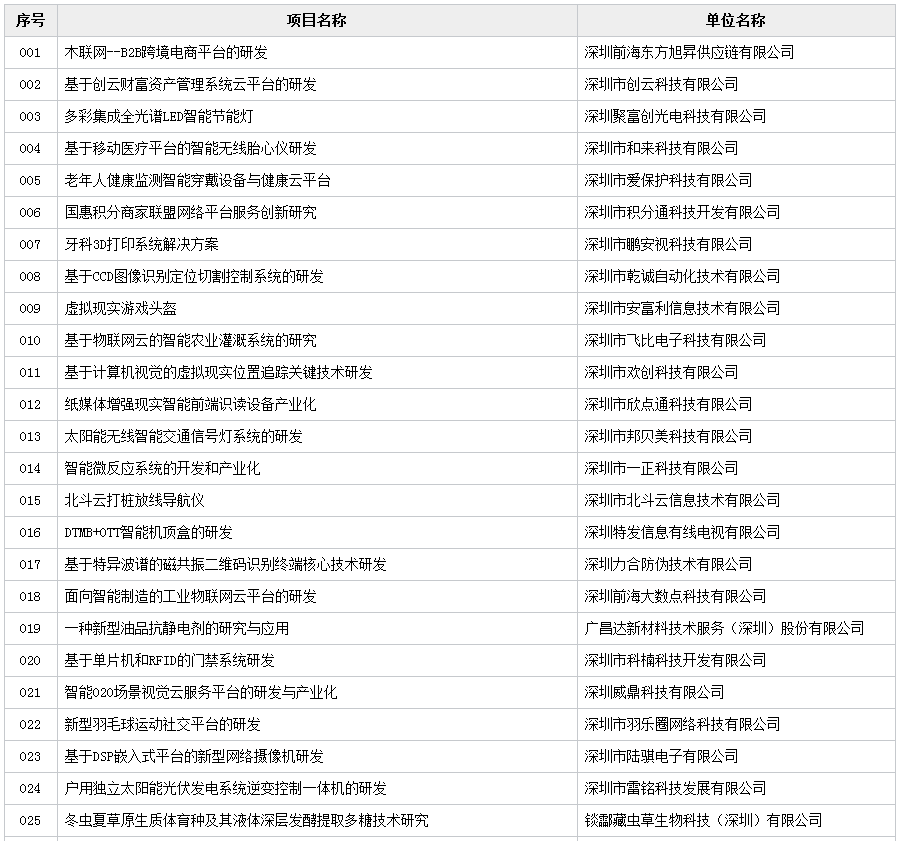 2016年科技研发资金银政企合作入库项目(第四批)(16.09.22)