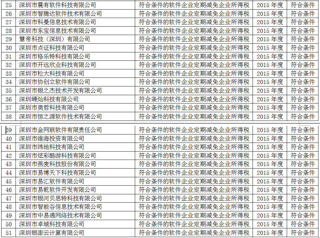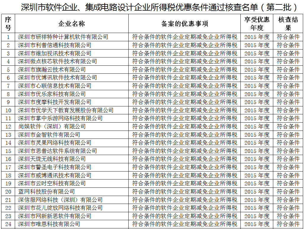 深圳市软件企业、集成电路设计企业所得税优惠条件核查结果(16.09.27)