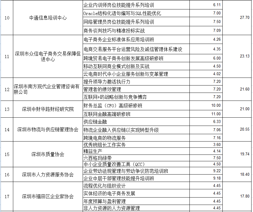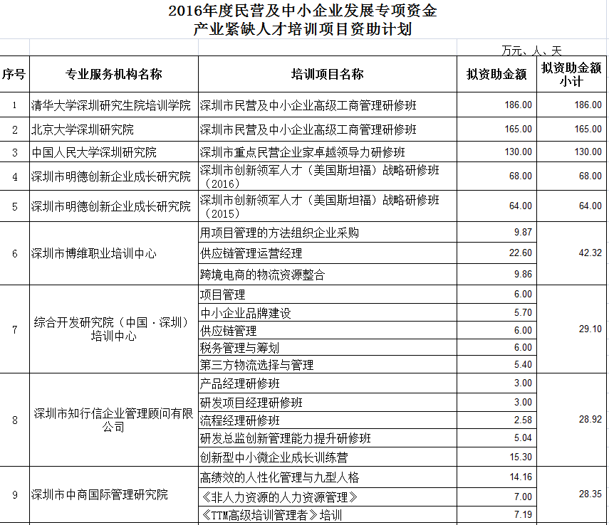 2016年深圳市民营及中小企业发展专项资金产业紧缺人才培训项目资助计划公示( 16.11.03)