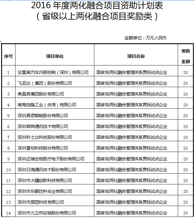 2016年度市产业转型升级专项资金两化融合项目资助计划(16.11.11)