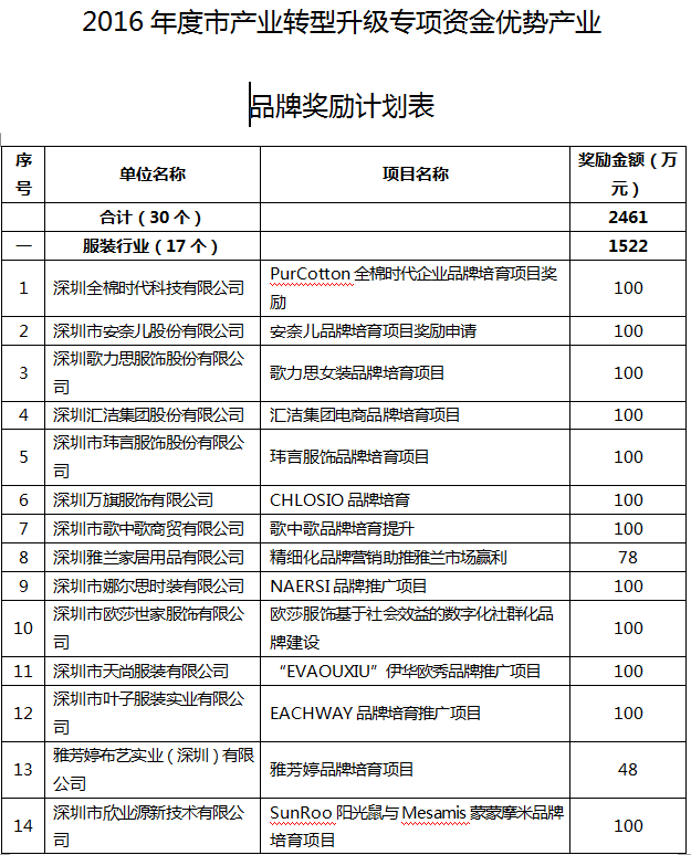 2016年度市产业转型升级专项资金优势产业品牌奖励计划的通知(16.11.14)