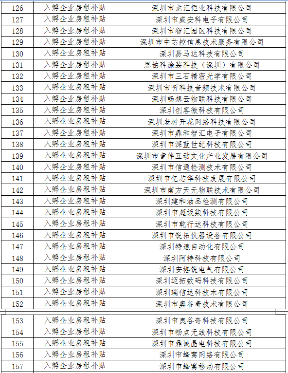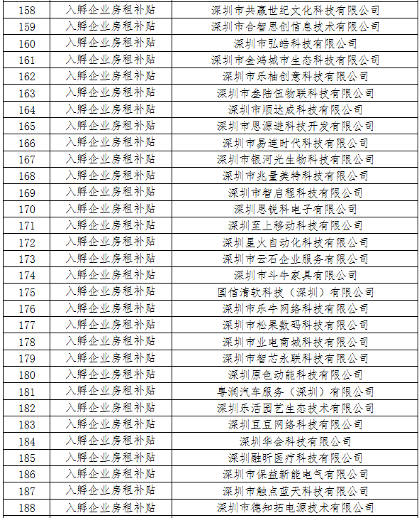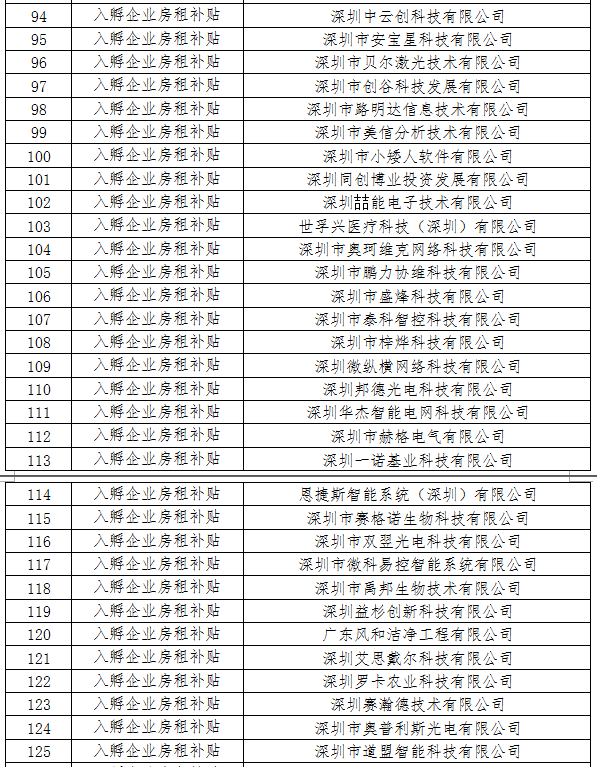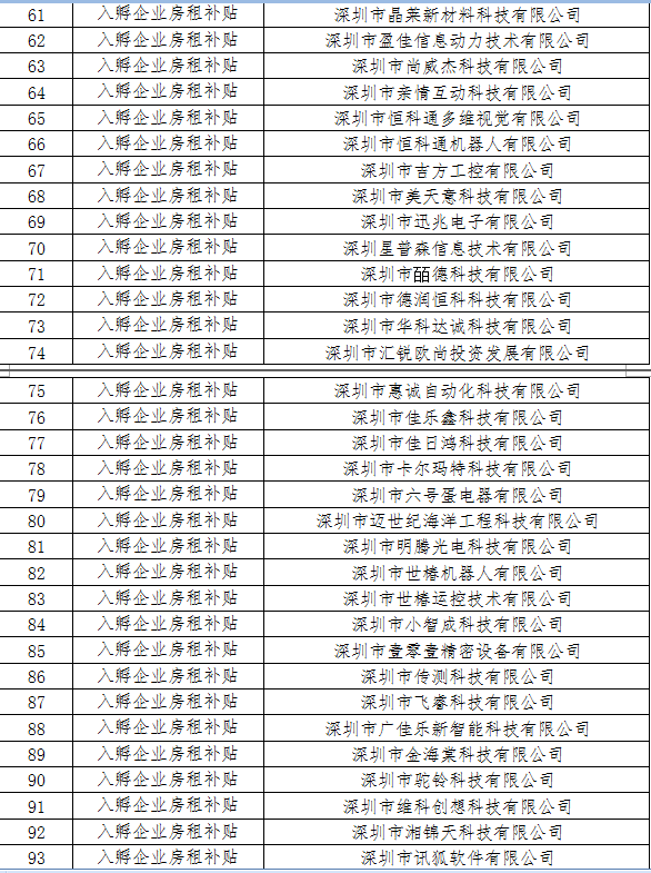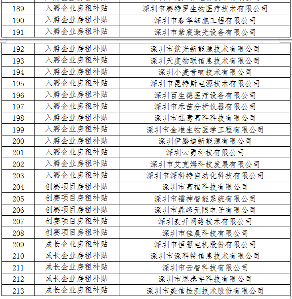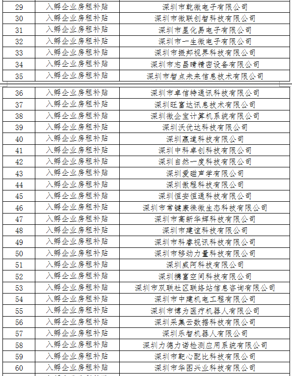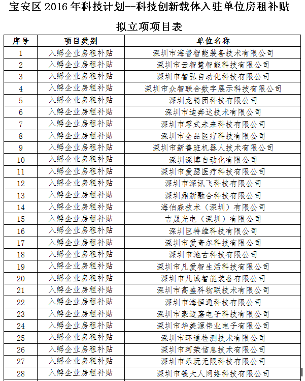 宝安区2016年科技创新载体入驻单位房租补贴项目拟立项公示(16.11.16)
