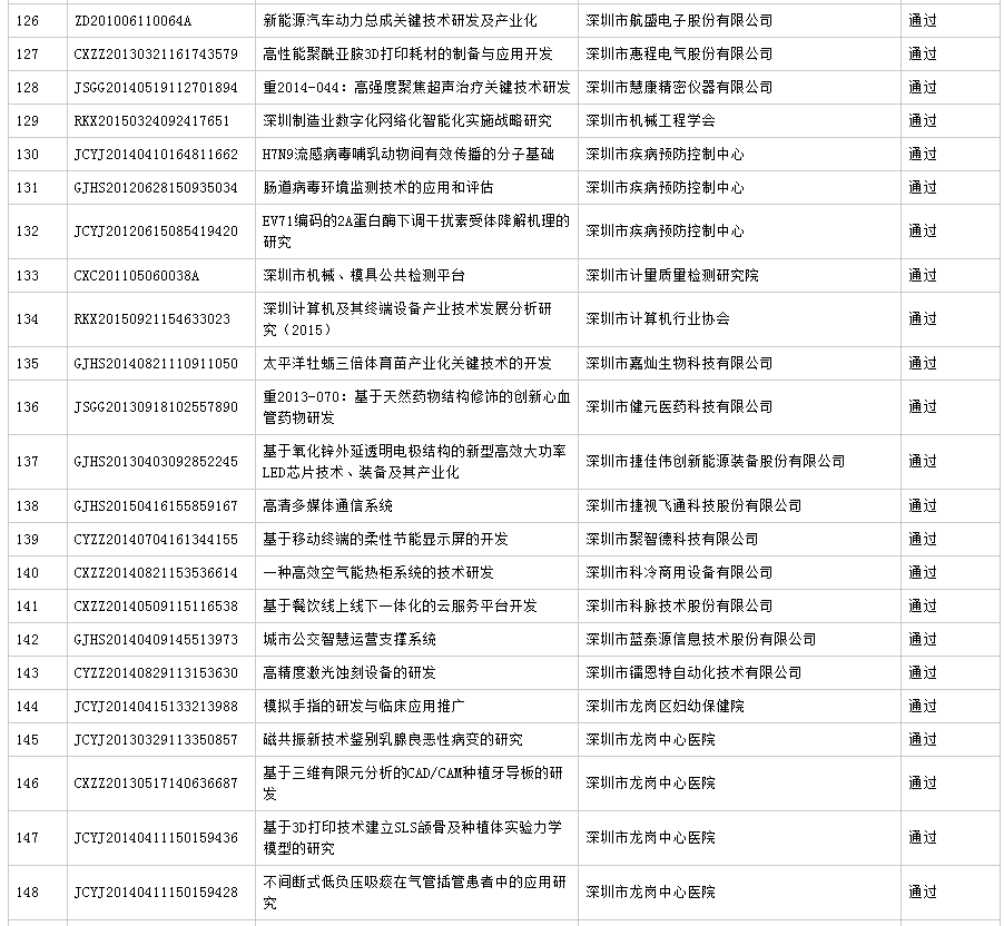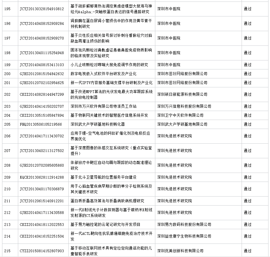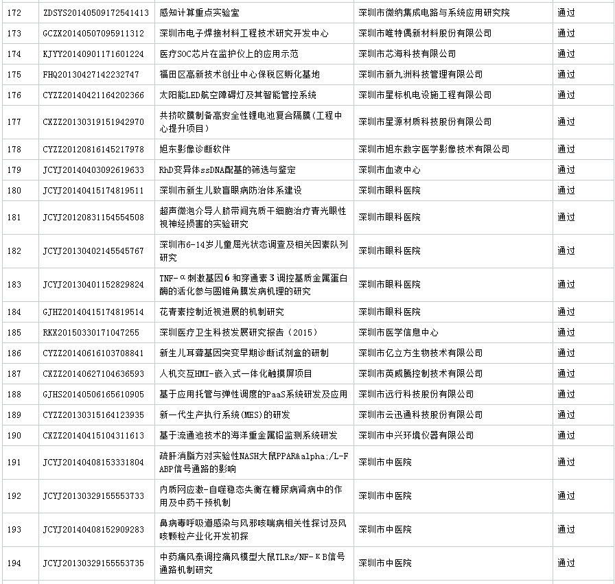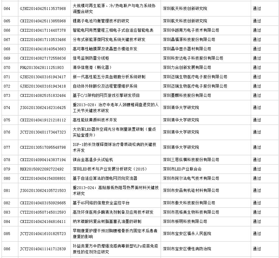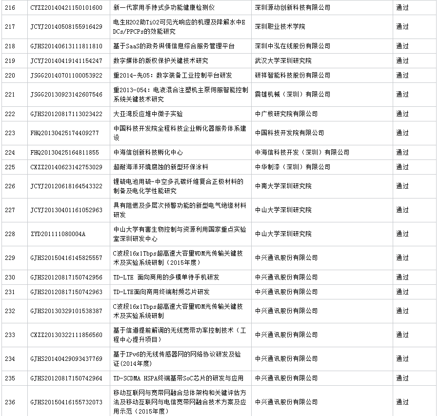 公布深圳市2016年第7批科技计划项目验收结果 (16.11.23)