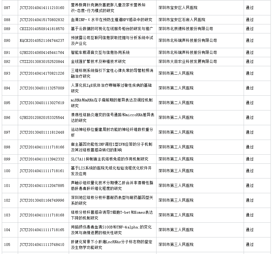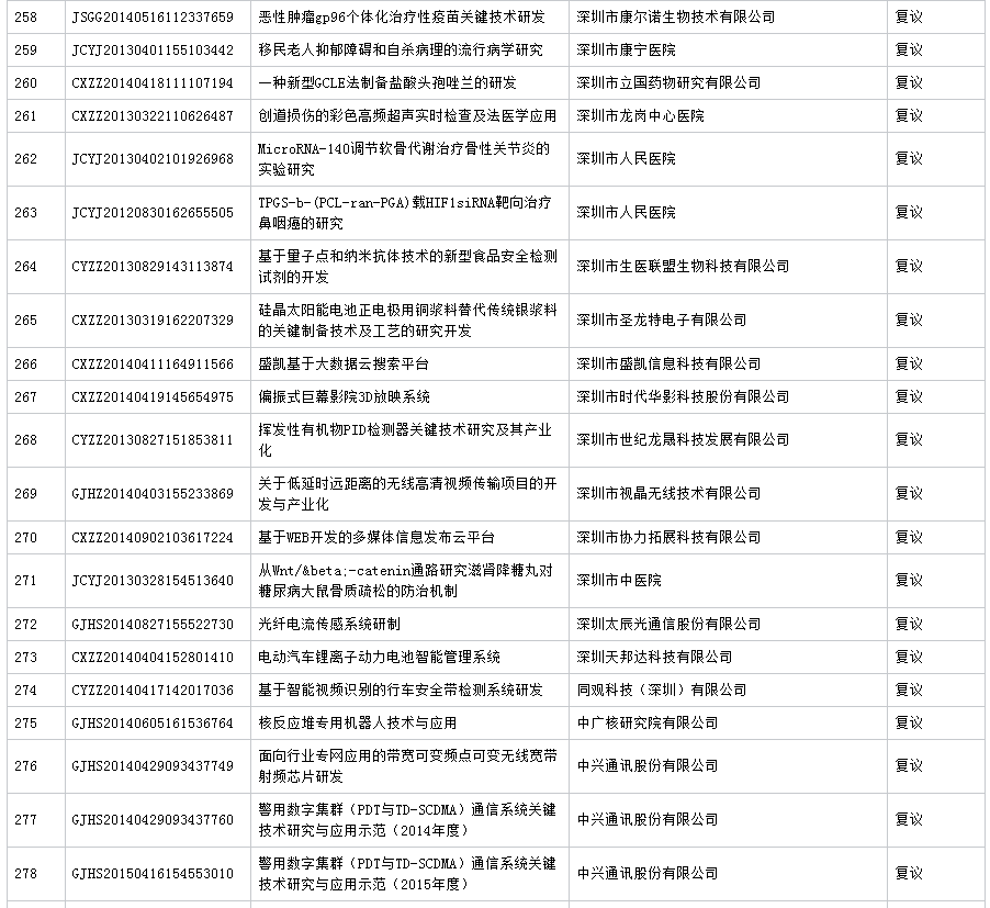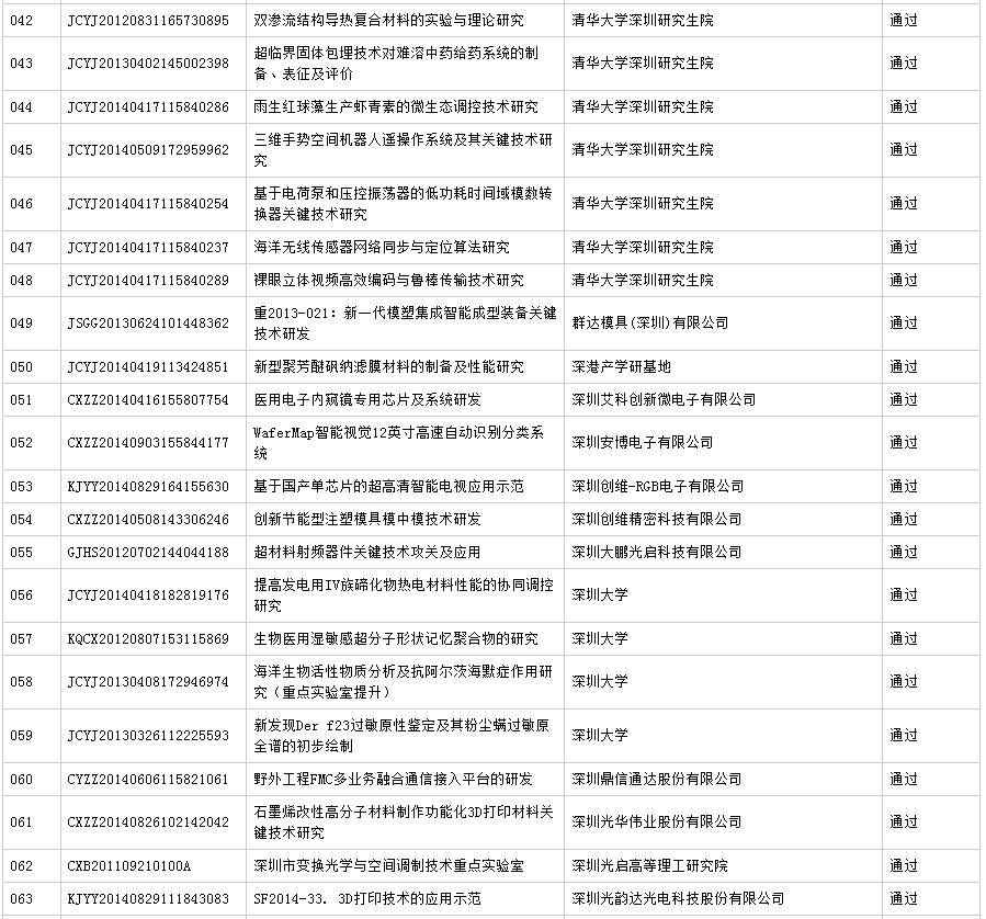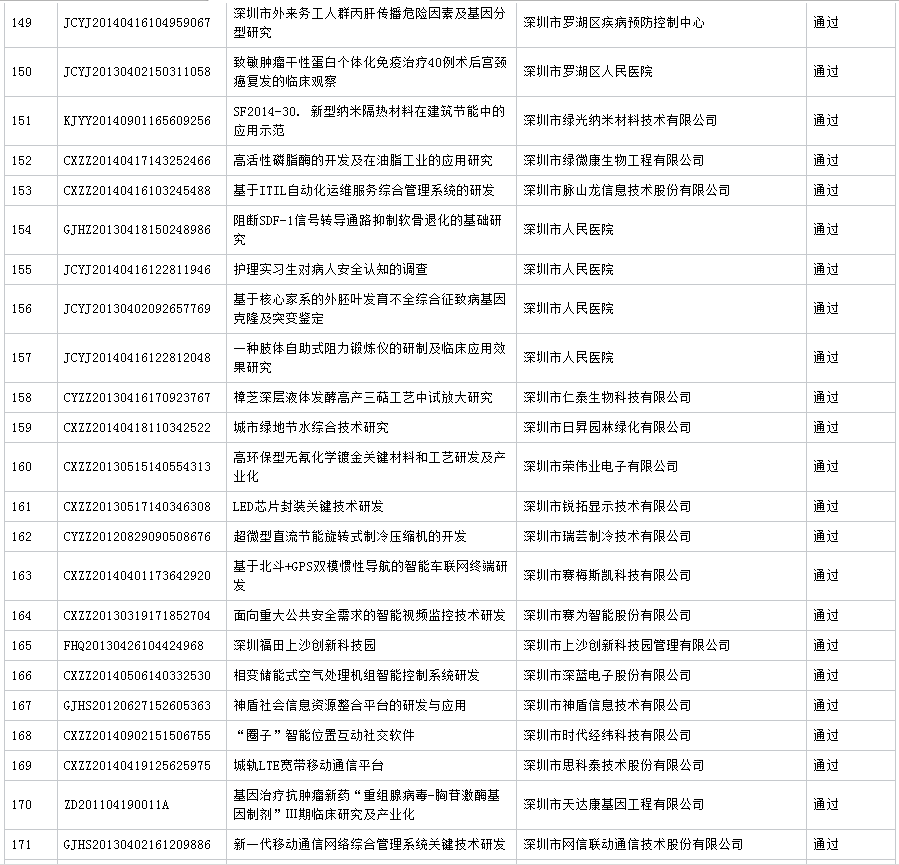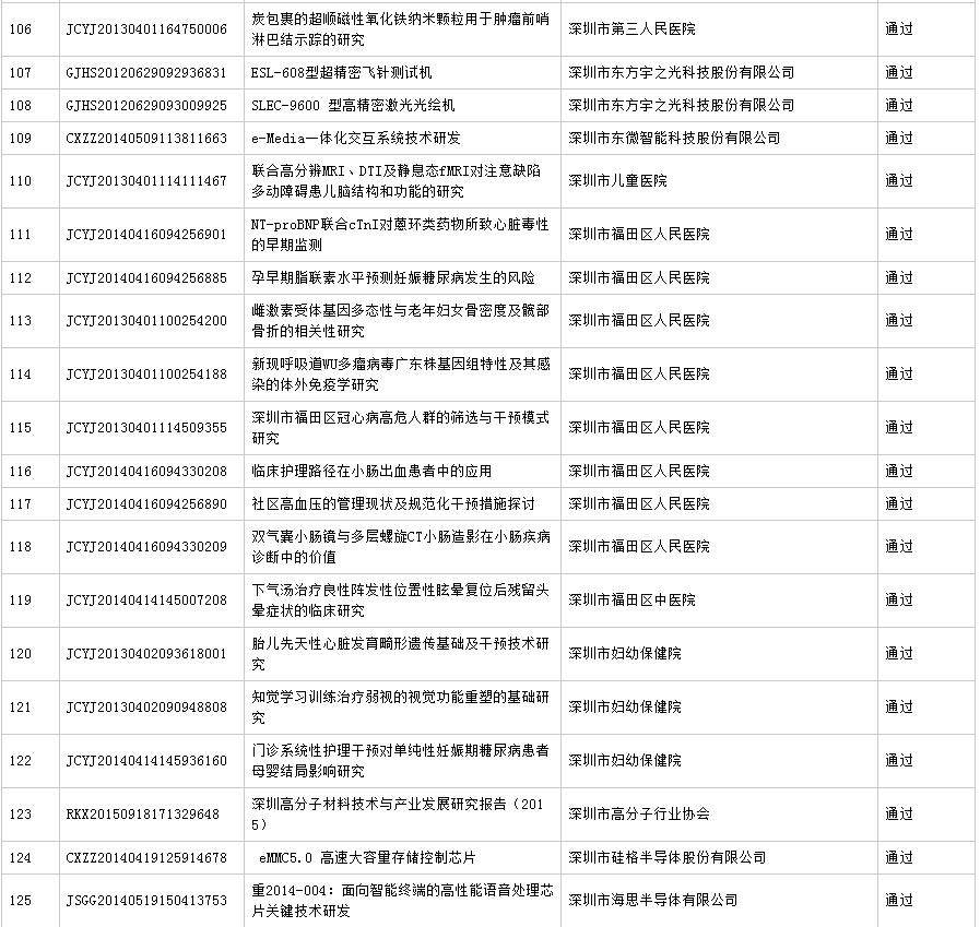 公布深圳市2016年第7批科技计划项目验收结果 (16.11.23)