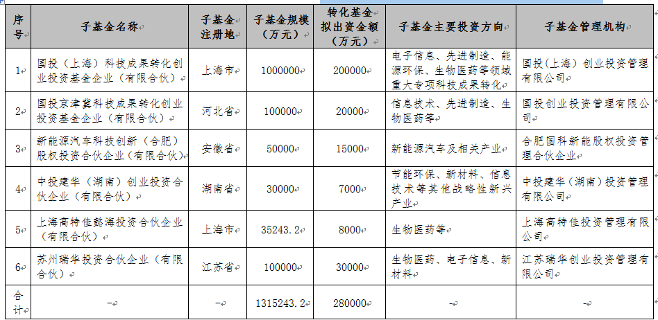 拟设立创业投资子基金公示 编码:1201000016