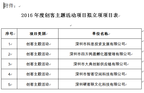 宝安区创客主题活动项目拟立项公示 编码:1216122016