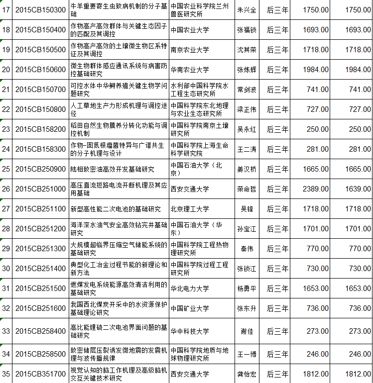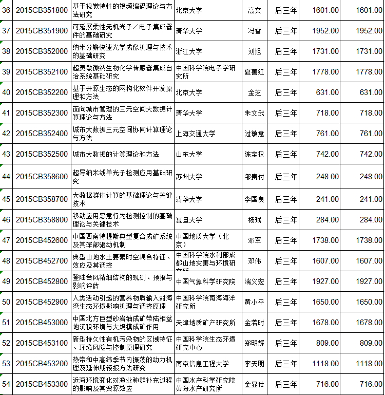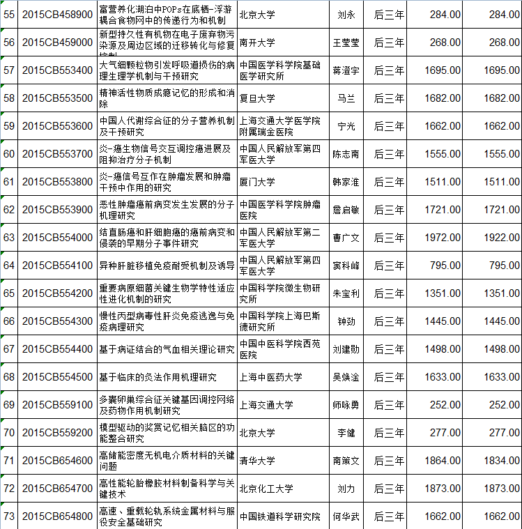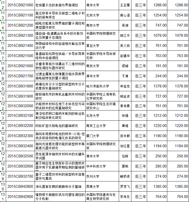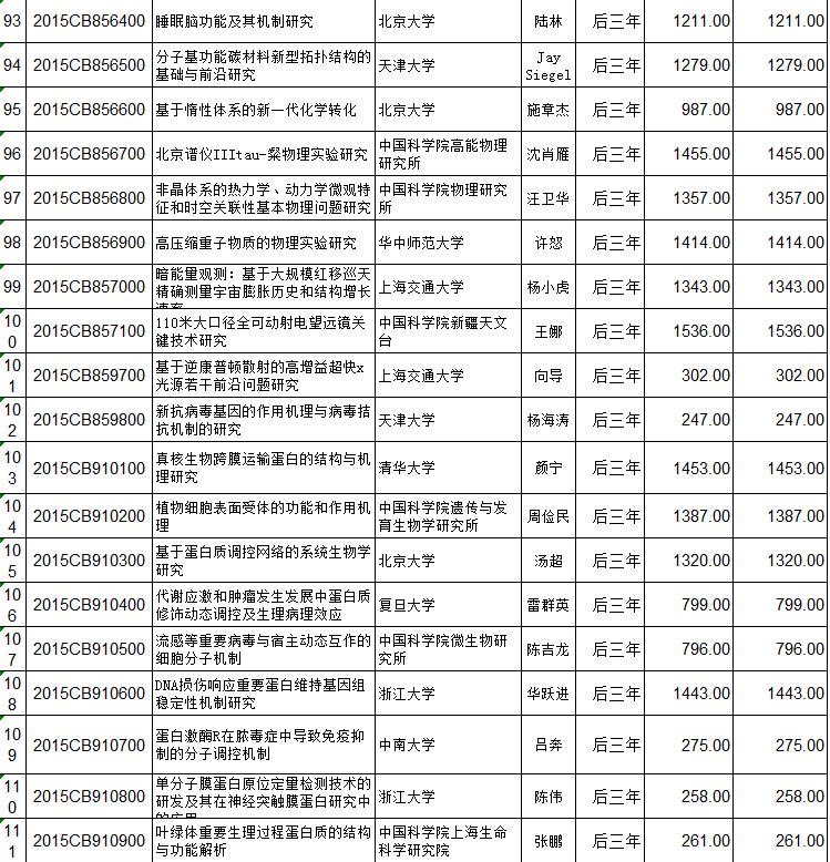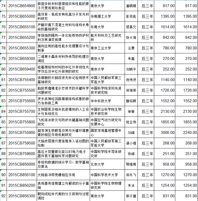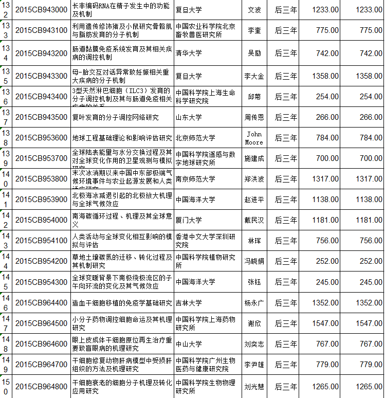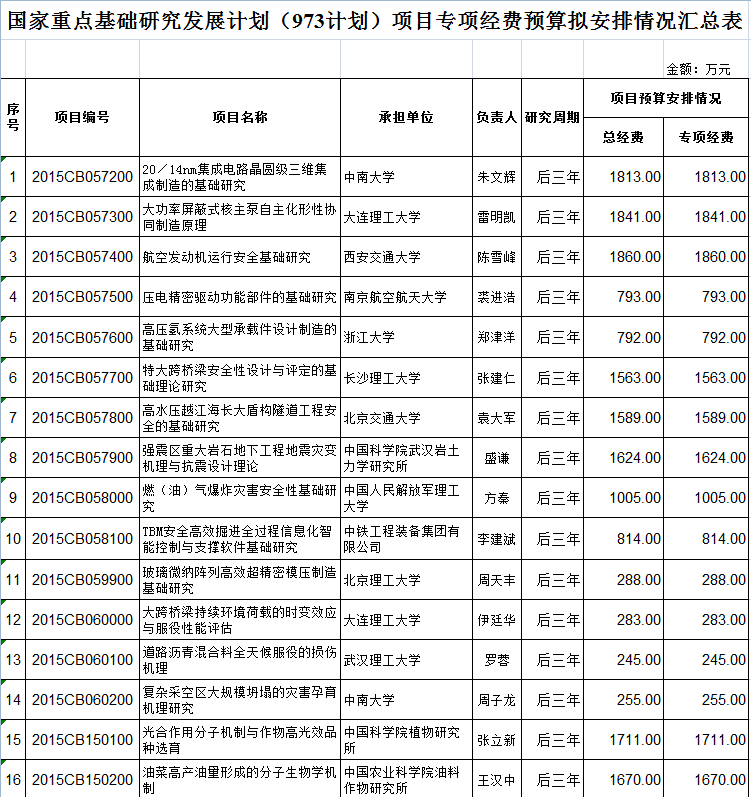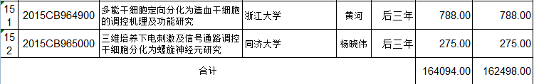 国家重点基础研究计划(973计划)立项152个项目后三年预算安排初步方案的公示 编码:1216122216