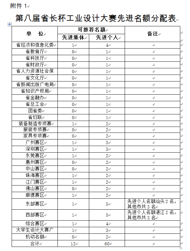 第八届“省长杯”工业设计大赛先进集体和先进个人评选的通知 编码:1219122116
