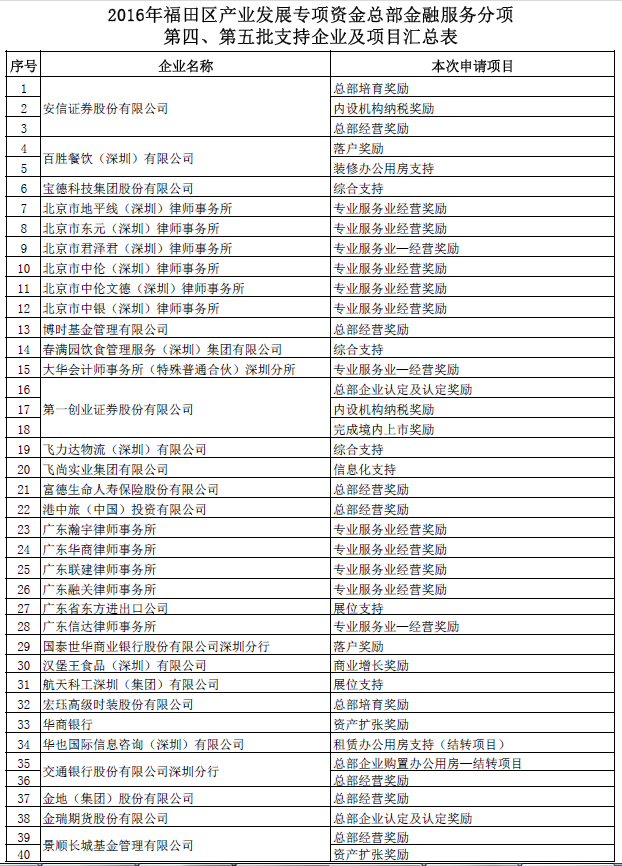 福田区产业资金总部金融服务分项第四、第五批支持企业及项目公告 编码:1228000017